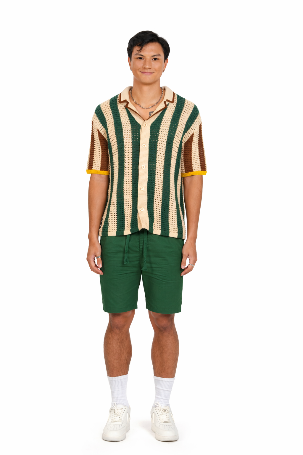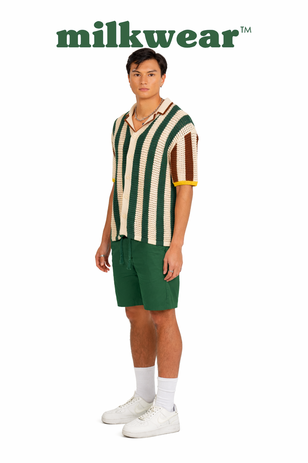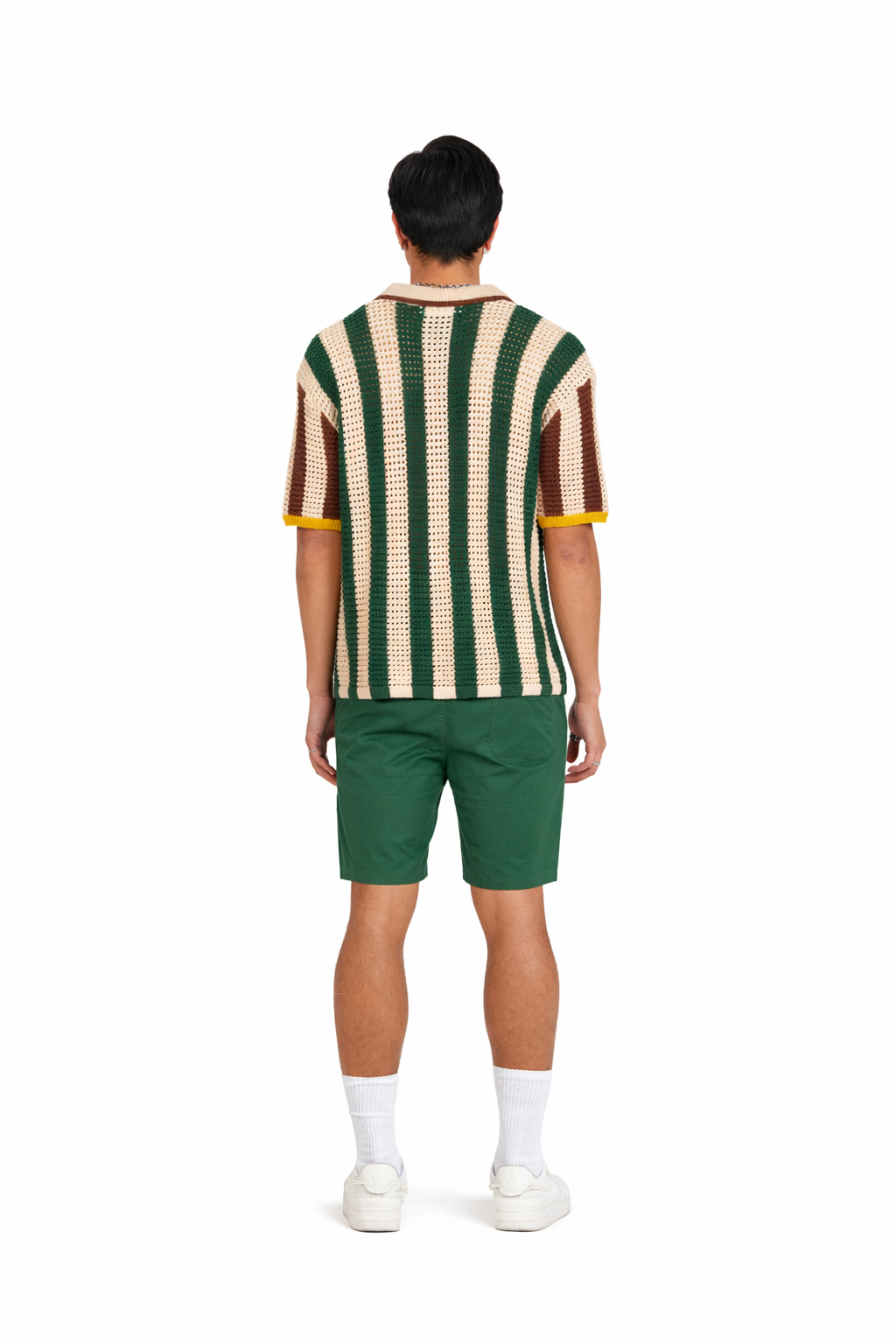 • Sleeve & Collar Details (Brown Trim, Yellow Contrast)
